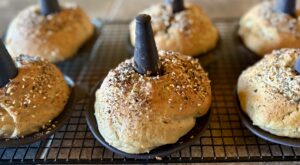 Fresh out of the oven! I know they will be tasty because the bread mix is phenomenal! Added Everything Bagel seasoning 😋