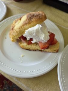 - Note: if topping with fresh strawberries, it’s best to wash, cap then chop the berries, sprinkle with a tablespoon or so of sugar to taste (berries are sweeter at some times of the year than others), then set aside to allow the lovely juices to form a syrup that can be drizzled onto the shortcakes when served with the berries. A heavenly combination!